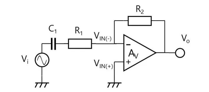 交流耦合电路是能降低输入补偿电压影响的最简单的电路形式。图4显示了一个交流耦合反相放大器。当电容器C1以这种方式连接时,由于输入补偿电压引起的电流不会流经R1,因此对VO的影响较小。